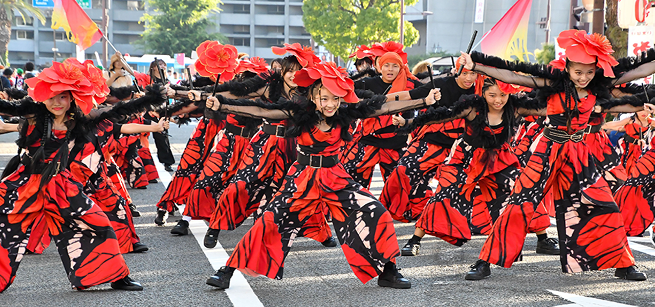 力強い掛け声とともに、グループごとに個性あふれる踊りを披露し、会場は熱気に包まれます。